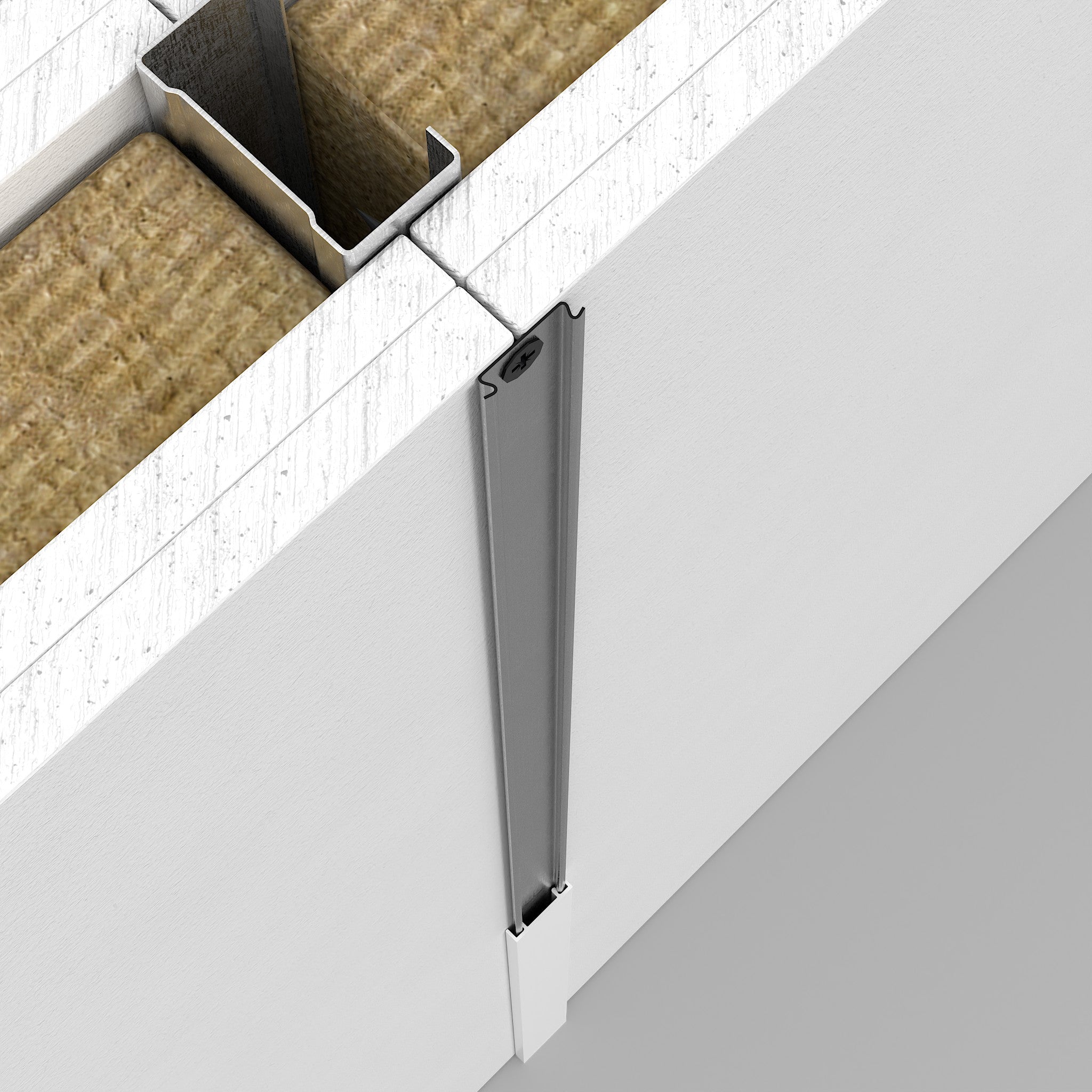 The C-Strip is the hidden backbone of the QIC cover trim system. This unpainted galvanised strip is fixed directly to board joints, providing the mechanical interface for the decorative aluminium cover trims to "snap" into place.